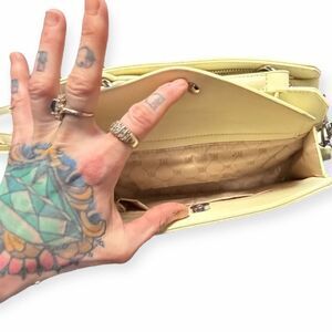 This chic STEVE MADDEN Bevelyn crossbody bag in a soft pale yellow shade is the perfect everyday accessory. It features multiple spacious compartments, silver-tone hardware, and comes with both a detachable wide logo strap and a slim adjustable strap so you can switch up your style effortlessly.
