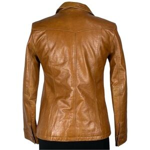 STEVE MADDEN Y2K RETRO 70'S CARAMEL LEATHER BUTTON DOWN CAR COAT JACKET