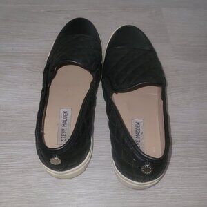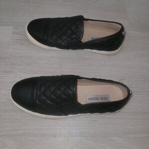 STEVE MADDEN ZAANDER Quilted Leather Slip-on Tennis Shoe 8 Black Comfort Designe