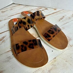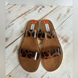 STEVE MADDEN leopard print slide sandals 9.5 chic cute summer animal print EUC