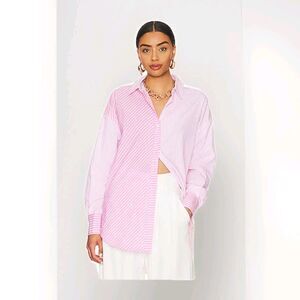 STEVE MADDEN women's button down Pink Poplin Oversized Shirt Top sz L mixed medi