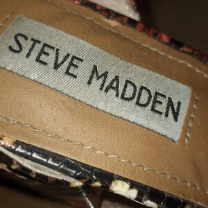 STEVE MADDEN IRENEE BROWN & BLACK SNAKE PRINT BLOCK HEEL ANKLE STRAP SANDAL SZ.8 EUC.