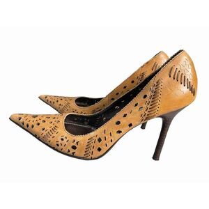 STEVE MADDEN|MATADOR LEATHER HEELS LASER CUT OUT DESIGN TAN SIZE 8B