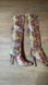 Stylish over-the-knee boots with a vibrant multicolor snakeskin pattern. Perfect for making a bold fashion statement.