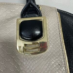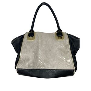 STEVE Madden Faux Vegan Leather Snake Skin Tote Satchel, Cream, Black, Gold