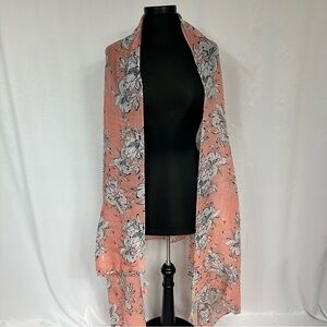 Steve Madden Hibiscus Peach Scarf. Beautiful print. Tassels on the corners. Can be used as a scarf or beach cover up. In excellent condition. Approximate Measurements: Length: 76”, Width: 40”. Material: 100% Polyester. Original Price: $40