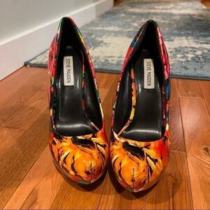 The Steve Madden Nala platform pump is a classic silhouette that every fashionista should have in their shoe wardrobe. With a pointed toe and a colorful floral print, these patent stilettos will update your look with flirty and feminine style!