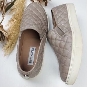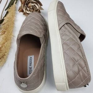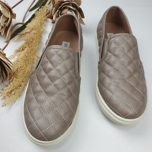 🔴 STEVE Madden Quilted Lether Grey Tan Loafers 6m