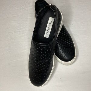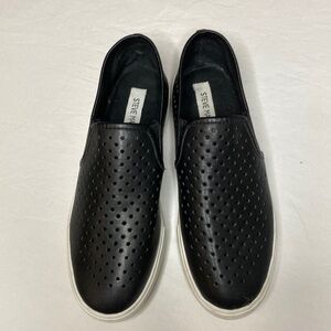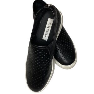 STEVE Madden Slip On Black Leather Sneakers. Women Size 8.5.