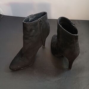 STEVE MADDEN SALLYY/SALL STILETTOS ZIP CLOSURE POINTE TOE WOMENS SUEDE ANKLE BOOTIE SIZE 7.5 COLOR BLACK MADE WITH FABRIC UPPER/LINING PU SOCK MAN-MADE OUTSOLE HEEL HEIGHT MEASUREMENTS APPROX 4"INCHED THIS ITEMS IS PRE-OWNED EXCELLENT CONDITION WITH ONLY LIGHT SIGNS OF WEAR IF ANY CHECK THE PICTURES