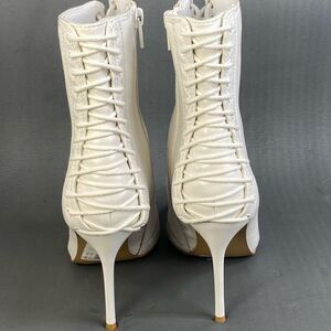 Laces up the front and the back of the Allnight booties from Steve Madden take a striking look through the roof on sleek stiletto heels.