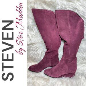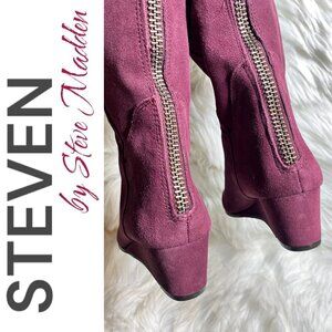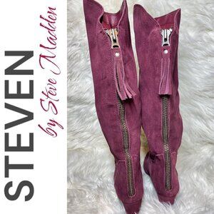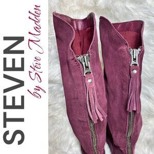 STEVEN BY STEVE MADDEN Larken Suede Wedge Tassel Tall Boots Burgundy, Size 7