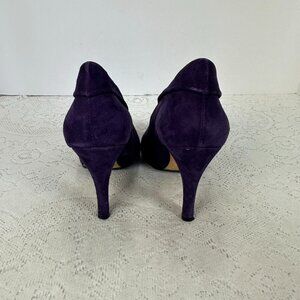 Purple heels, with partial open tops. The soles have actual leather with rubber under toes for grip.