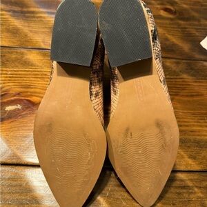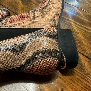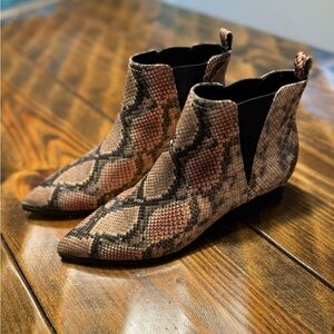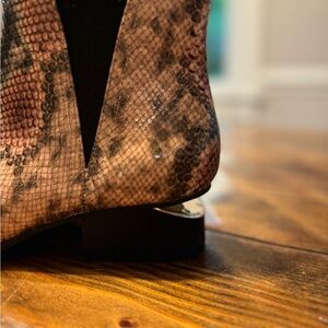 Pull on ankle bootie, animal print, leather with very unique heel. Size 8.5