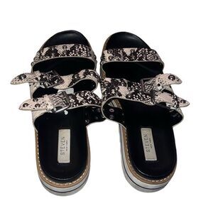 Keywords: sandals, slides, studded, snakeskin, snake print, STEVEN NEW YORK, platform, casual, summer, fashion, comfortable, stylish, adjustable strap