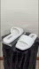 Right shoe has a very tiny spot of manufacturer glue. Minor wear on soles/insoles. Please see photos and video.