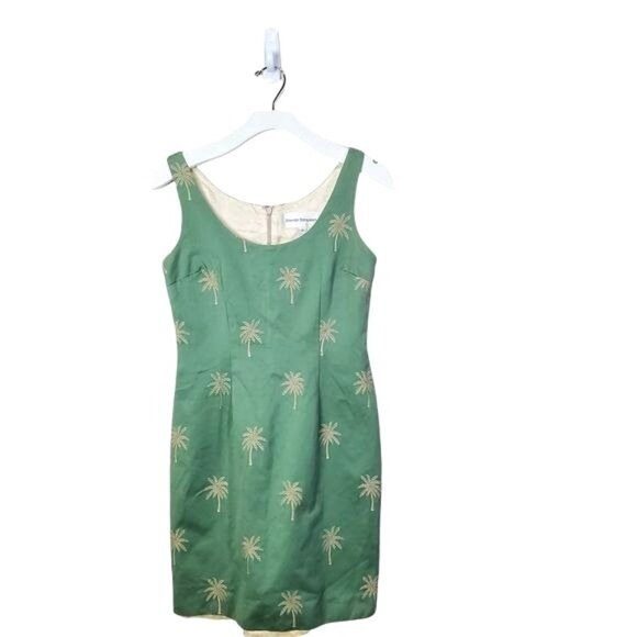 STEVEN STOLMAN Womens Dress Princess Cut Green Palm Tropical Shift Embroidered 4