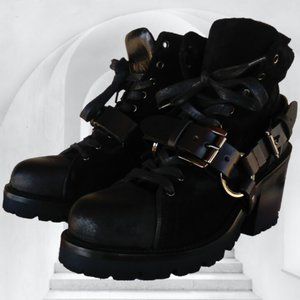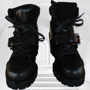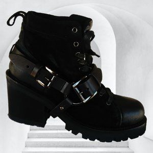STEVEN by STEVE MADDEN BLACK LEATHER HARNESS STRAP BOOTS
