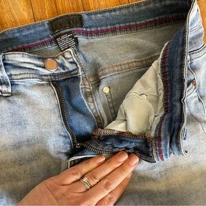 Very good used condition except for back pockets droop slightly (as pictured) and small snag right back leg (as pictured)