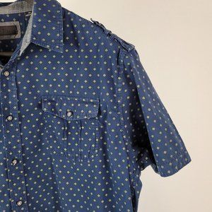 STEVE'S JEANS geo print casual button shirt blue Sz 2X