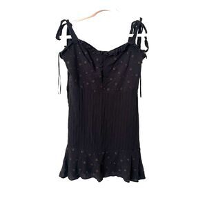Black mini dress with star embroidery. Pleated body. Adjustable tie straps. Ruffled sweetheart neckline and hem. 100% viscose. Great preloved condition, gently worn. Size medium