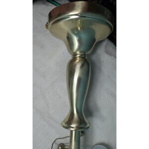 The STIFFEL VTG BRASS TABLE LAMP is a vintage piece from the 1960s, featuring a Mid-Century Modern design with two arms and a 23-inch height. This large corded electric lamp has an antique brass finish and a retro 50's charm, perfect for adding character to any room. The lamp does not come with shades but has a pull chain control style and twin sockets for added functionality. With a solid brass construction and a warm white LED lighting technology, this Stiffel table lamp is a timeless piece that exudes vintage style and elegance. There is minor pitting in a couple of spots near base, swirling marks-possible harsh cleanser used. Minor issues that hardly detract from this iconic center piece.