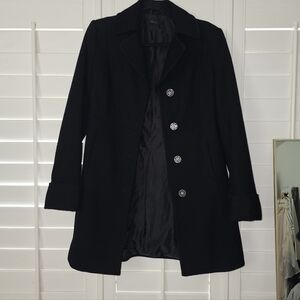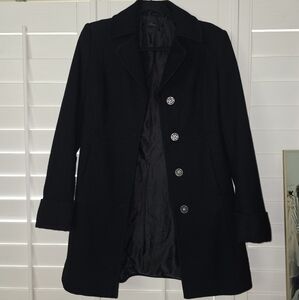 Stile Benetton wool blend Jacket in black. Great pre-owned condition. Snap button closure, cuffed sleeves, and functional pockets.