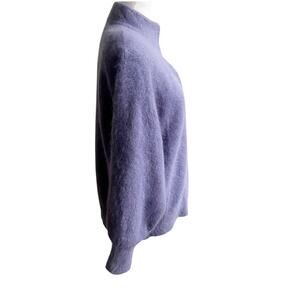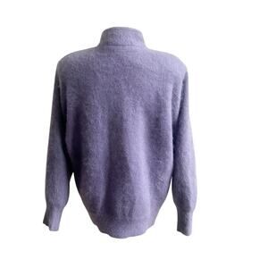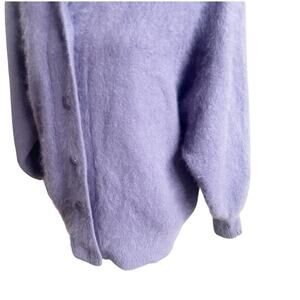The Stillman Studio 80% Angora Vintage Purple Lined Cardigan Jacket Coat in size L is a stylish and cozy sweater perfect for casual occasions. Made from a tight-knit fabric blend of Angora and acrylic, this vintage piece features a solid brown color with a fuzzy texture. The cardigan has long sleeves, a full zip closure, and shoulder pads for added style. Ideal for winter, fall, and spring seasons, this sweater also offers a lined interior for extra warmth and comfort.