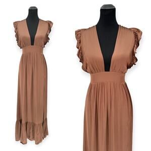 STILLWATER Revolve | Small | What If Chocolate Brown Plunge Neck Maxi Dress