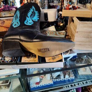 GORGEOUS BLACK COWBOY BOOTS WITH BLUE STITCHING AND ALL LEATHER DESIGN UPPER MADE IN COLOMBIA AVAILABLE AT GLITZ 180 DANIELSONPIKE SCITUATE RI 02857