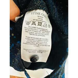 STINE GOYA Black Blue Metallic Button Front Floral Lucian Long Sleeve Top sz XS