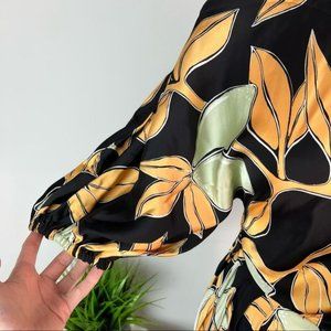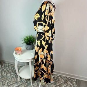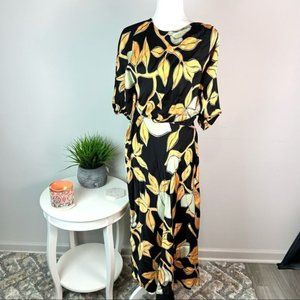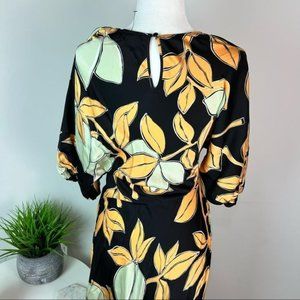 STINE GOYA womens Aubrie Lemon Print Midi Dress size XS Yellow Citrus Print