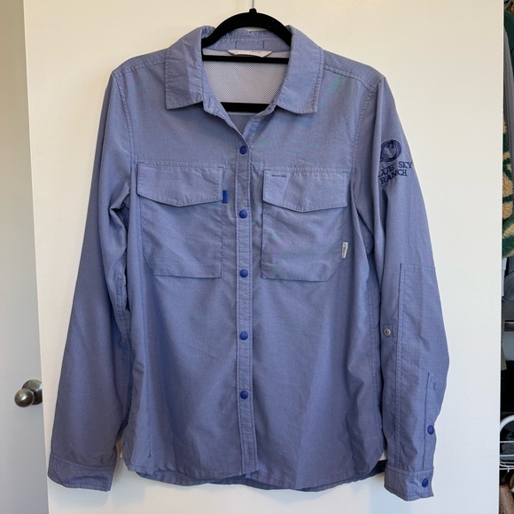An auberge resort classic, Blue Sky ranch allows you to step into your western dreams. Hike, ride, or fish in this perfect breathable Stio summer longsleeve. Complete with pit vents, pockets, and snap buttons.