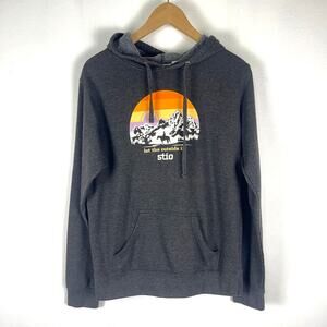 STIO Hoodie Women's Medium Dark Gray Mountain Graphic Print Fleece Sweatshirt