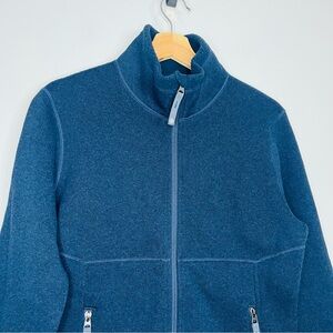 Warm, insulating fleece with a sweater knit appearance. Lightweight brushed mesh pocket bags.