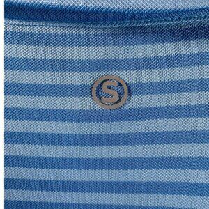 STITCH Dri Fit Polo Shirt Blue striped Preppy Golf Casual Soft Shirt Short Sleev
