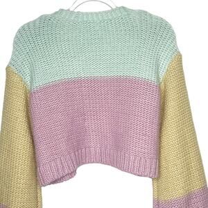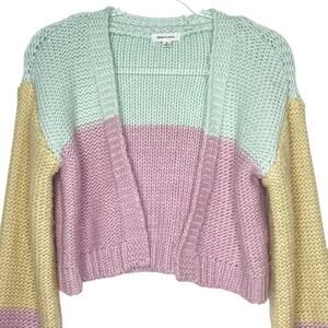 STITCH & PINE Colorblock Cropped Open Cardigan Sweater Knitted Multicolor Size M