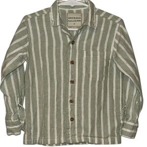 Stylish green striped shirt paired with matching green pants. Perfect for a casual look. Like New-olive & white