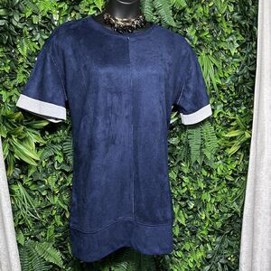 STITCHDROP Dress Women Large Blue Faux Suede A Line Short Sleeve 1951