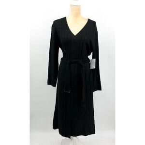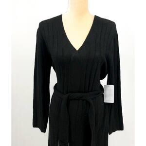 STITCHDROP Women's Tied To You Belted Midi Sweater Dress Medium Black NWT