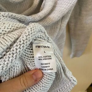 Size L. Stitches and Stripes gray chunky knit open back sweater. Excellent used condition. Reasonable offers welcome!