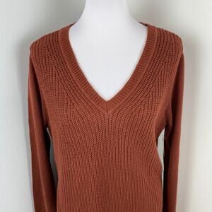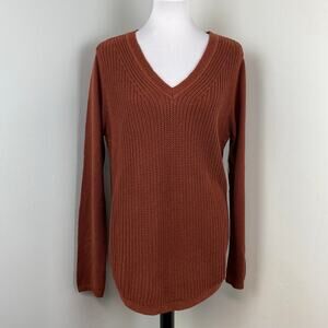 STITCHFIX RD Style Josslyn V-Neck Sweater Burnt Orange Chunky Knit Cotton Large