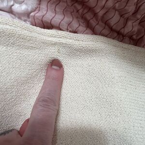These are amazing St. John pants. They are a pull on style size 8, but can be bigger depending on the person there is two small marks shown in the photo. They are dry, clean only pants, but in excellent lightly used condition.