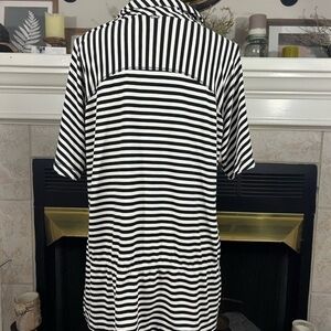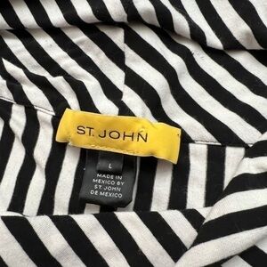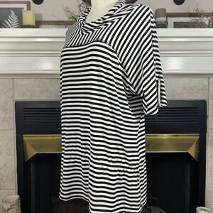 ST.JOHN Luxury Viscose Black And White Striped Tunic Top With Cowl Neck
