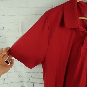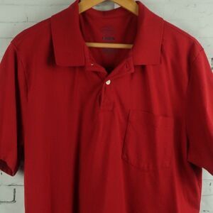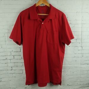 RED COTTON SHORT SLEEVE COLLARED 2 BUTTON COTTON BLEND SHIRT WITH LEFT CHEST POCKET SIZE LARGE BY ST JOHNS BAY PRE OWNED NO FLAWS