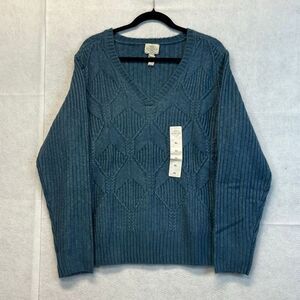 ST. JOHN’S BAY Women’s Pullover Sweater XL Denim Blue V Neck Long Sleeve NWT