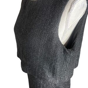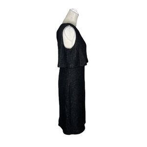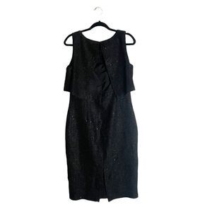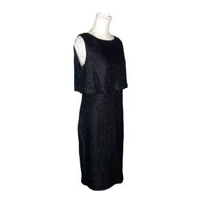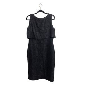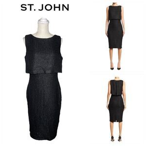 ST. John Metallic Tweed Sheath Dress. Fleck of sparkling metallic sequins elevates this tweed midi dress with a top popover detail for a polished yet stylish look. Crewneck Sleeveless Back zip closure Lined 41% rayon, 21% polyester, 14% acrylic, 14% cotton.