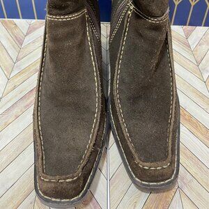 STL Brown Mid-Calf Suede Wedge Heel Boots With Stitch Detail & Side Zipper Size