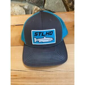 STLHD Teal Grey trucker hat snap back. Mesh Back Fish Logo. Adjustable.Men/Women
