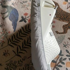 Gently used grey newborn seat compatible with the STOKKE Tripp Trapp system. Lays flat for newborns and at an angle for infants. Plastic seat with grey fabric washable cover.